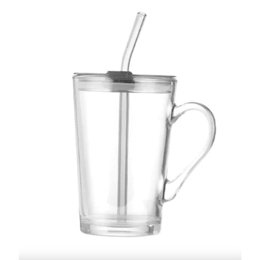 Glass Mug With Bamboo Lid And Stainless Steel Spoon