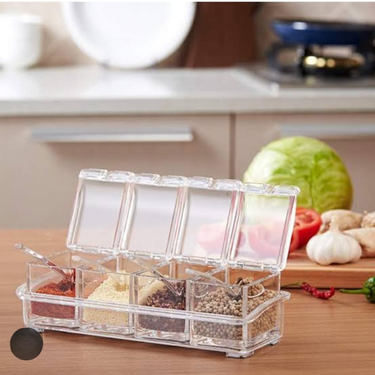 8pc Glass Square Jars On Bamboo Stand 6x10cm