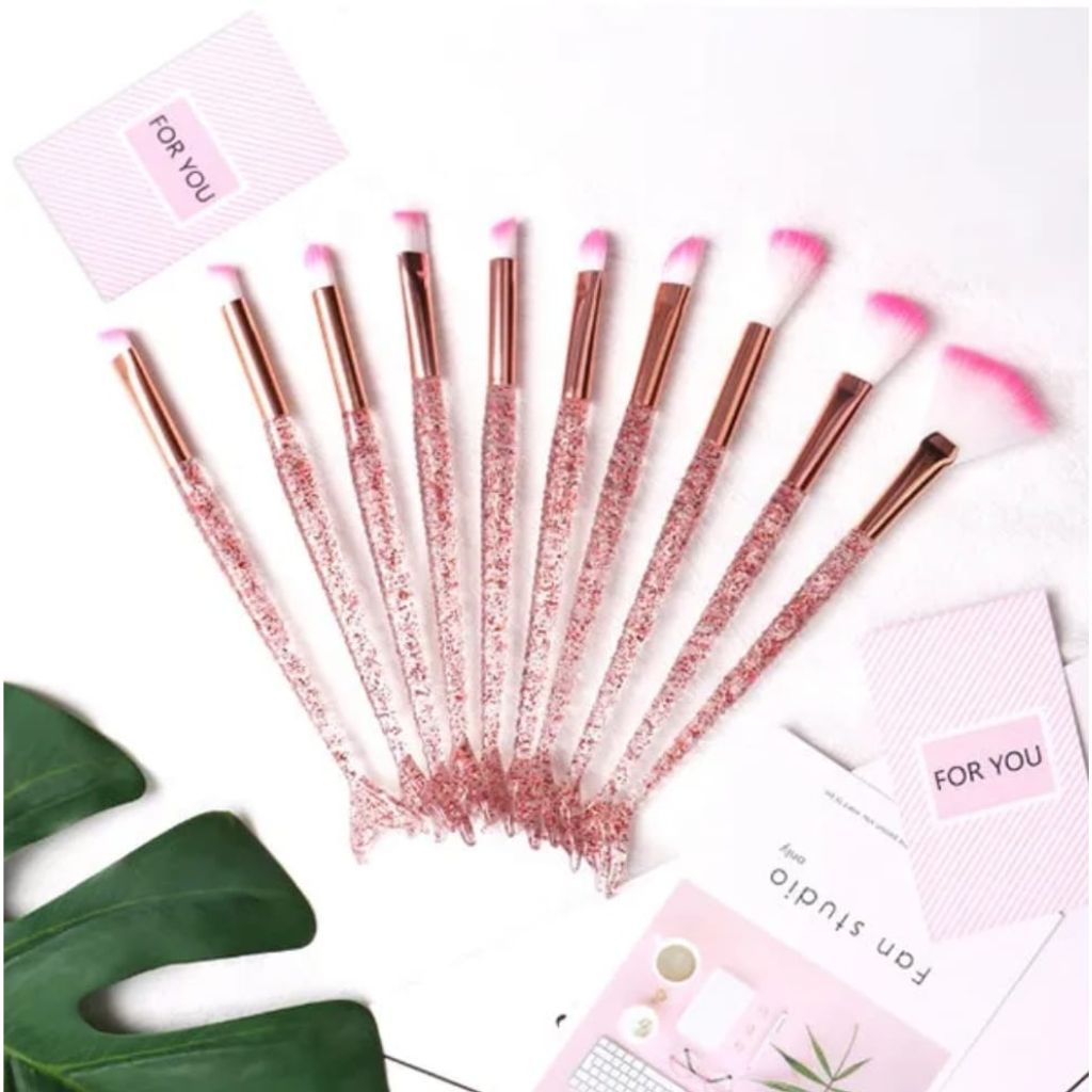 Dive into a world of sparkle and creativity with the 10-Piece Mermaid Glitter Makeup Brush Set! Perfect for makeup lovers of all ages, this enchanting set features glitter-filled handles and soft, synthetic bristles designed for smooth, flawless application. With a dazzling mermaid tail design, these brushes are as fun as they are functional.