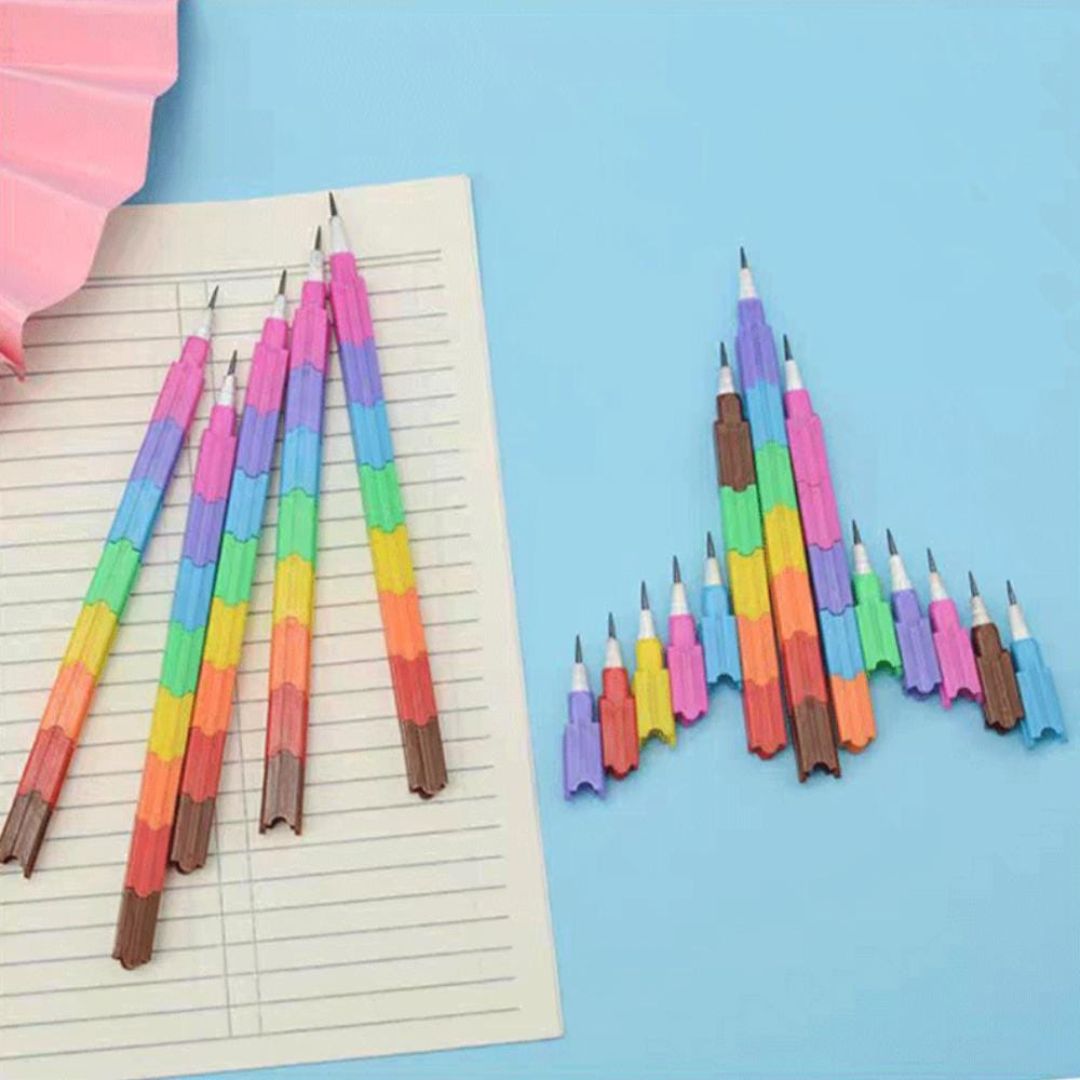 Includes 4 stackable rainbow pencils