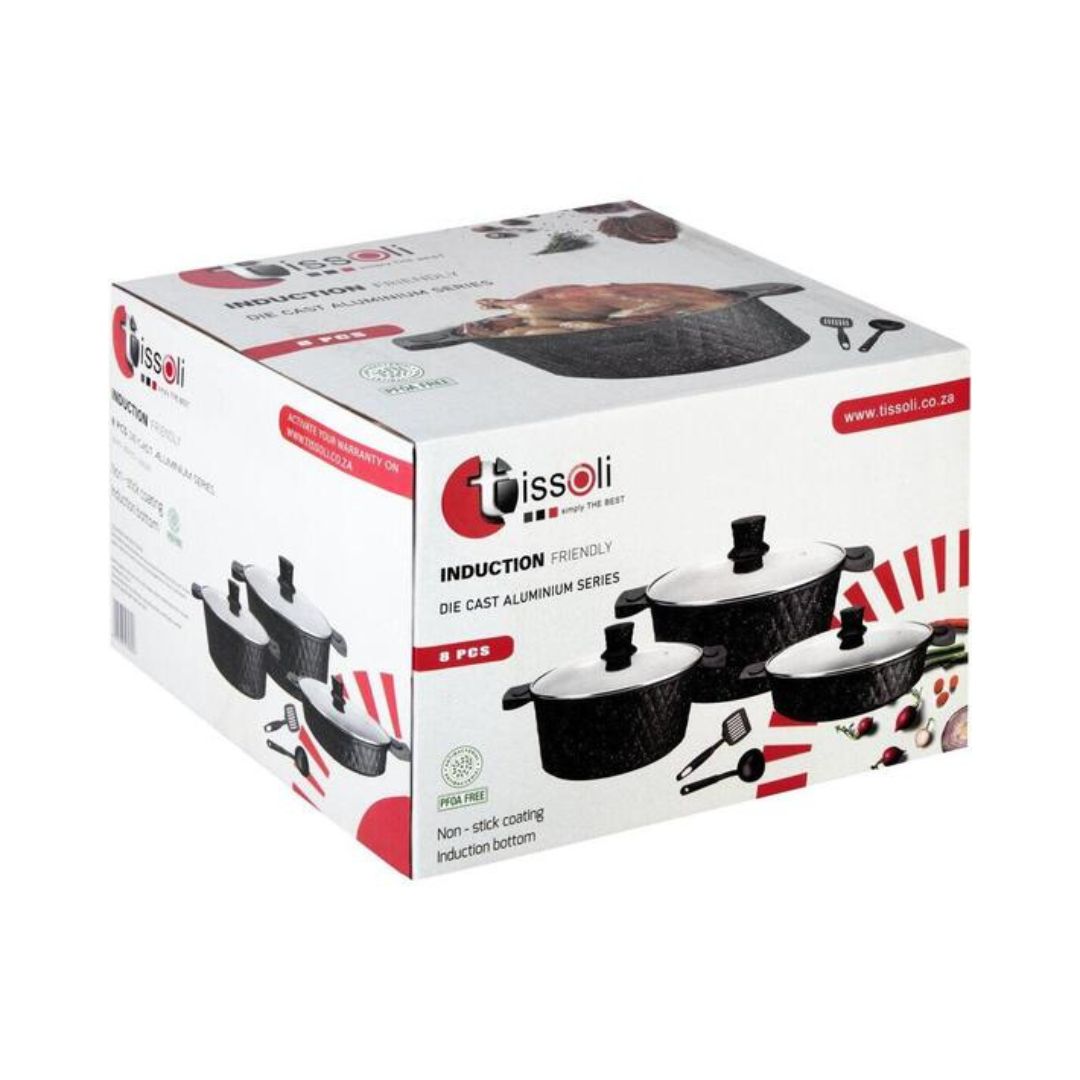 Upgrade your kitchen with the 8pc Tissolli Cast Aluminium Cookware Set, designed for everyday cooking with professional results. Crafted from high-quality cast aluminium, this set ensures fast, even heat distribution for perfectly cooked meals every time.