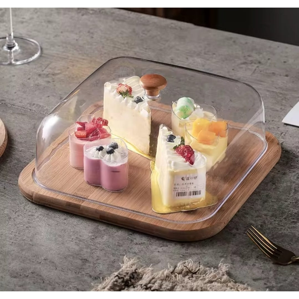 Acrylic Cake Dome with Wooden Base