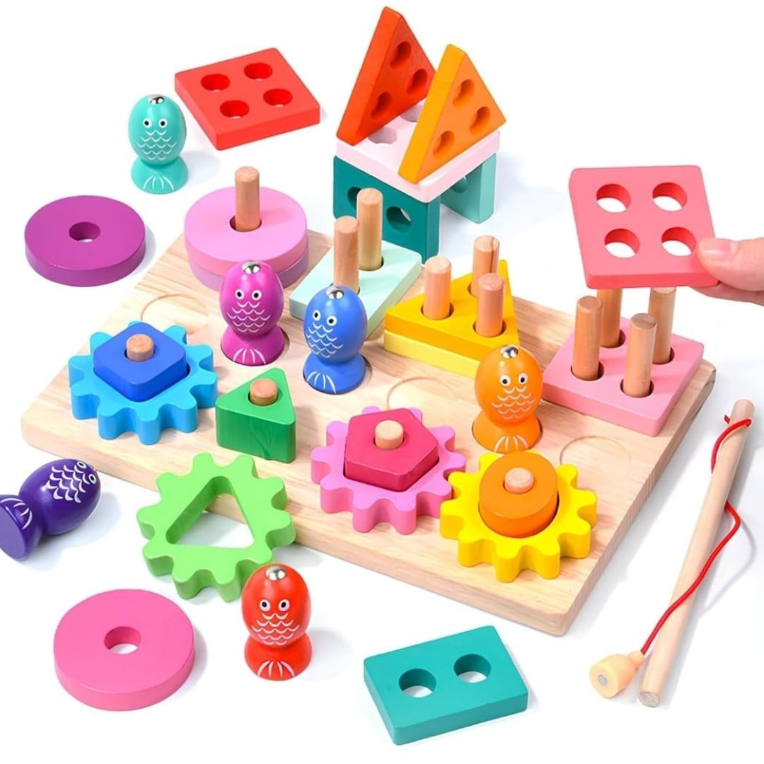Featuring brightly colored fish in different shapes, children can use the included magnetic fishing rod to “catch” the pieces, matching each fish to its corresponding slot. With three fun ways to play, this set keeps little hands busy while encouraging problem-solving, concentration, and color and shape learning.