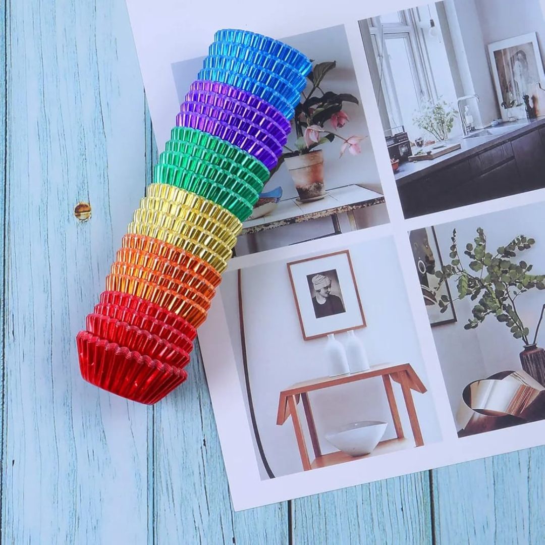 Bake and serve in style with these premium foil cupcake liners. Designed with a durable, non-stick surface, they ensure your cupcakes and muffins come out perfectly every time. The foil material helps distribute heat evenly for consistent baking and also prevents leaks and grease stains. With 100 liners in each pack, they’re perfect for parties, celebrations, or everyday baking.